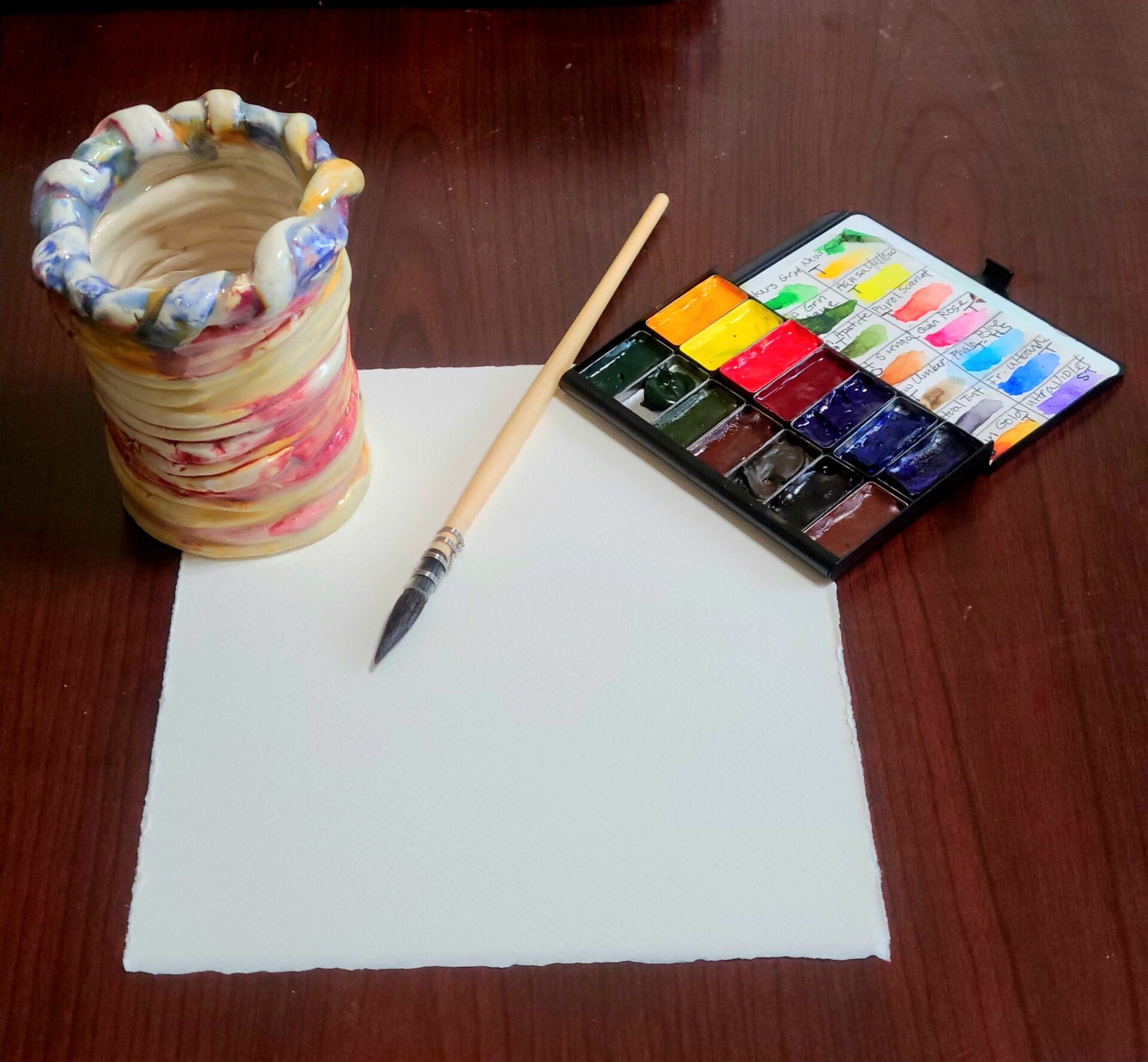 Well...at least I hope this is a new beginning. A sheet of watercolor paper, a palette & my favorite squirrel hair brush sounds like a good place to start, right?